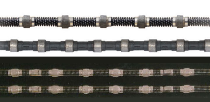 采用橡膠繩主要有如下優(yōu)點(diǎn):橡膠與鋼繩有更好的結(jié)合力,黏結(jié)得更牢,更能承受惡劣工作中的沖擊;橡膠耐溫性好,可適應(yīng)冷卻水不足時(shí)的使用,譬如在水霧狀況下的工作性能;柔韌性強(qiáng),減少珠子使用中的偏磨,也更適應(yīng)較小的曲率半徑。